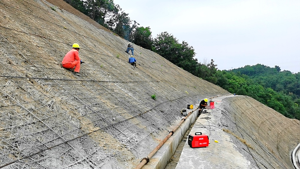 新建猇亭服務(wù)區(qū)路塹邊坡綠化防護(hù)優(yōu)化工程項(xiàng)目-右場坪高邊坡-鋪設(shè)鋼筋網(wǎng)↓
