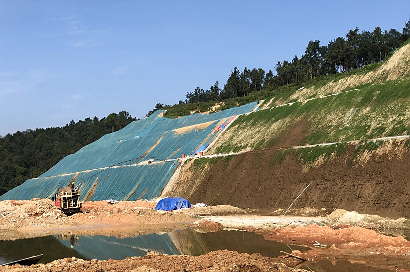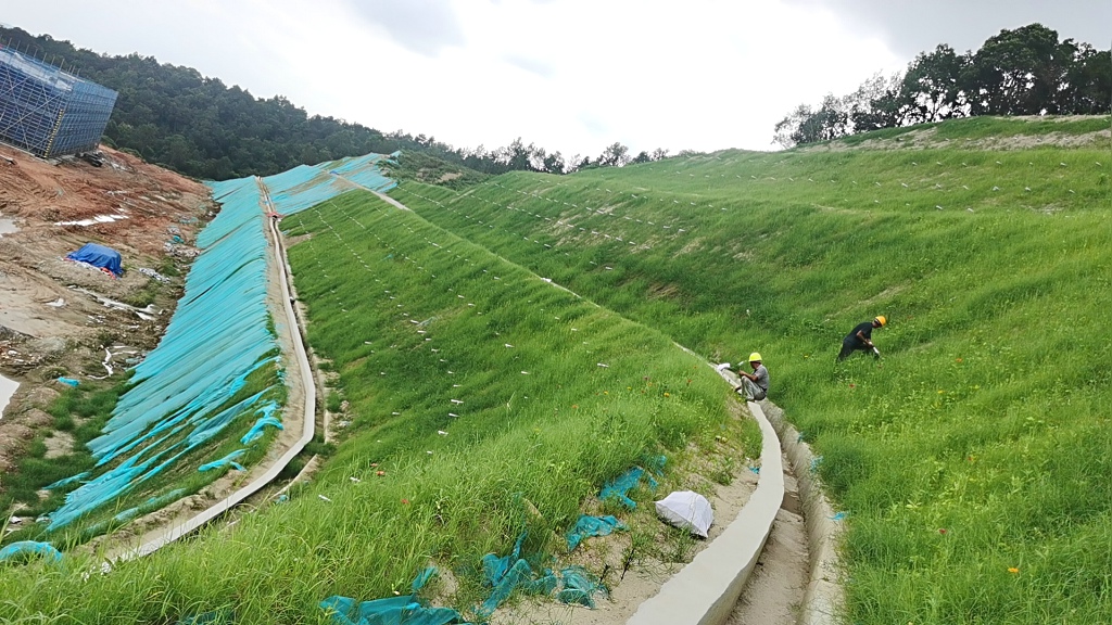 新建猇亭服務(wù)區(qū)路塹邊坡綠化防護(hù)優(yōu)化工程項(xiàng)目-右場坪高邊坡-覆蓋無紡布↓