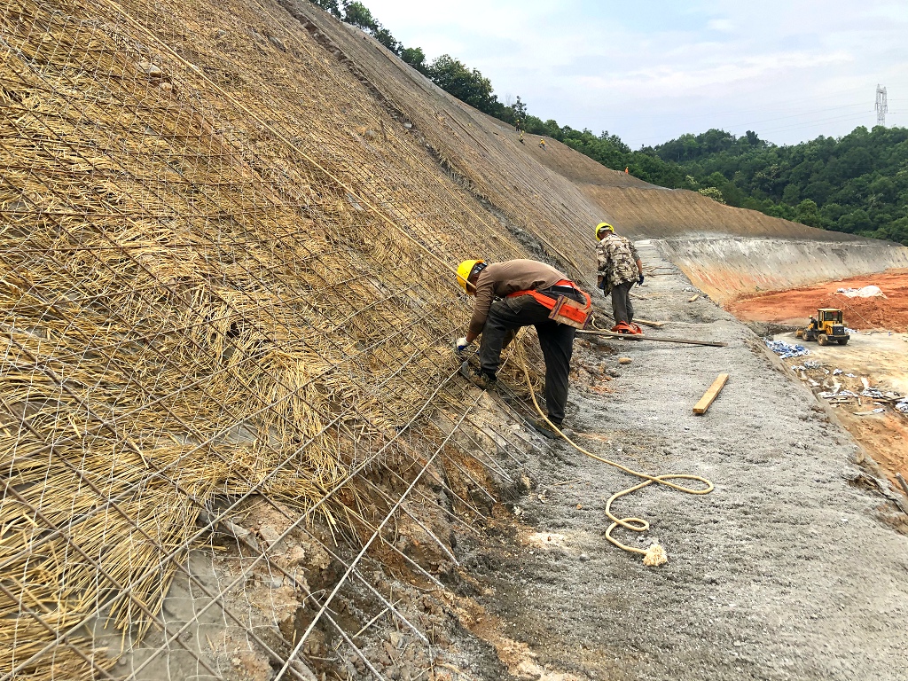 新建猇亭服務(wù)區(qū)路塹邊坡綠化防護(hù)優(yōu)化工程項(xiàng)目-右場坪高邊坡-掛草簾↓