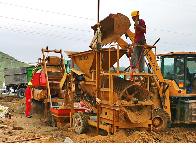 新建猇亭服務(wù)區(qū)路塹邊坡綠化防護(hù)優(yōu)化工程項(xiàng)目-右場坪高邊坡-篩土、拌料↓
